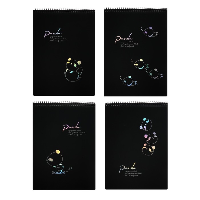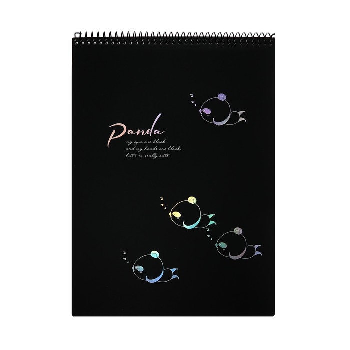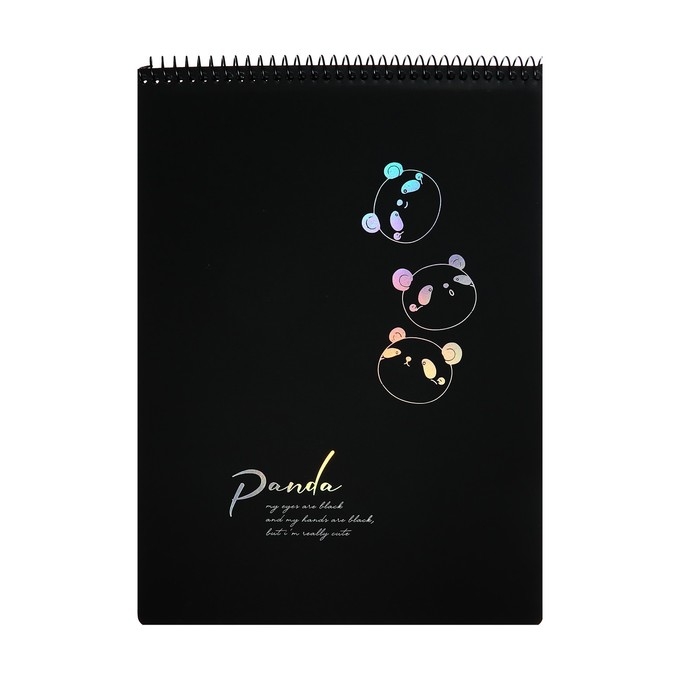 Скетчбук А4, 30 черных листов на гребне, "Панда", твердая подложка, плотность 110 гр., МИКС