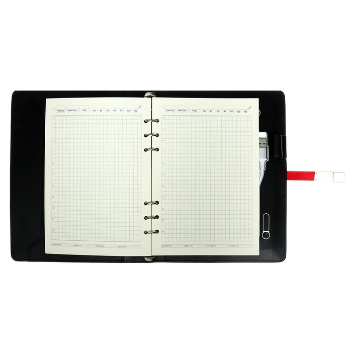 Органайзер на кольцах,ПВХ,А5,140 л, клетка,с ручкой,подар. короб,флешка,зарядка,МИКС