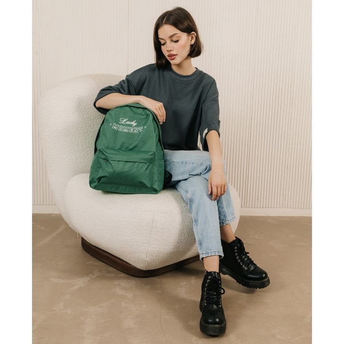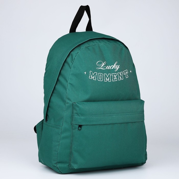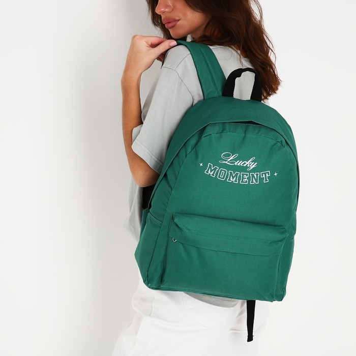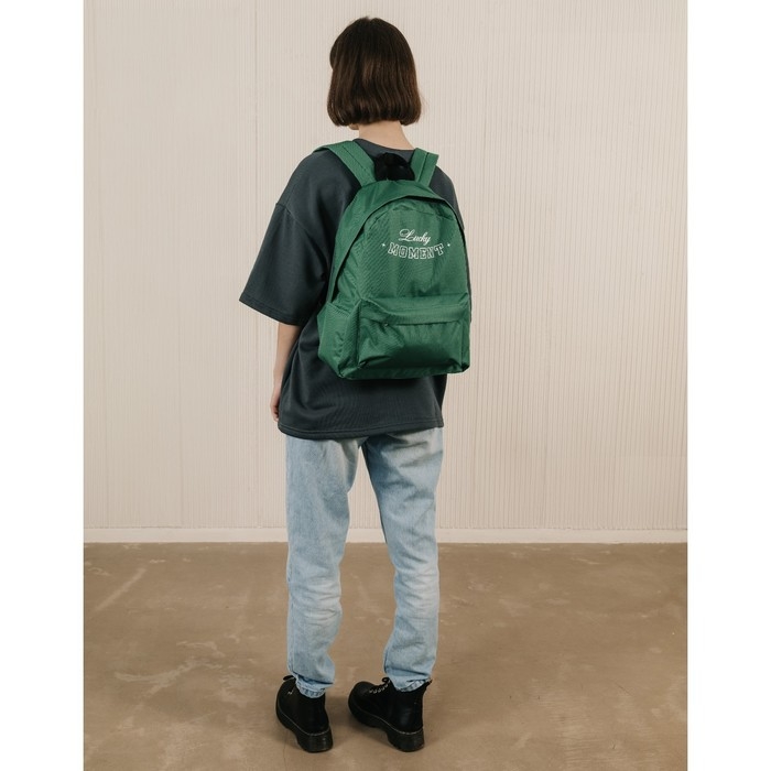 Рюкзак школьный текстильный Lucky moment, с карманом, 29х12х40, цвет зелёный