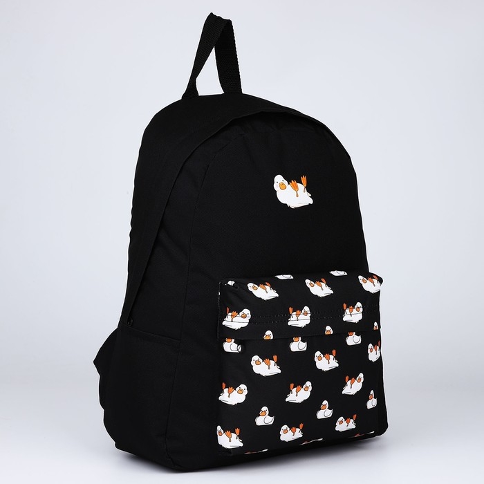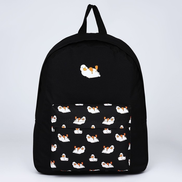 Рюкзак школьный текстильный «Уточки», с карманом, цвет чёрный