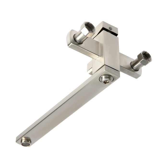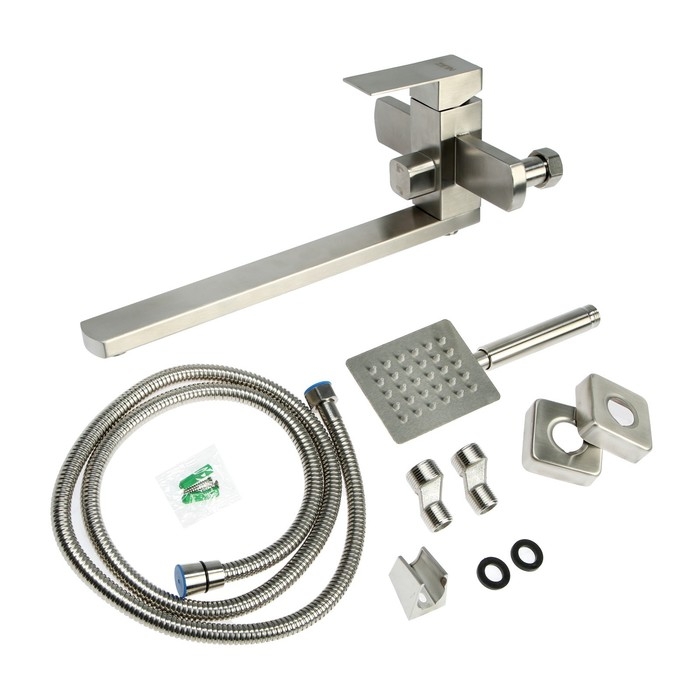 Смеситель для ванны ZEIN, квадрат, излив 35 см, с душевым набором, нержавеющая сталь, сатин