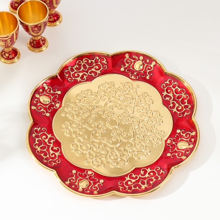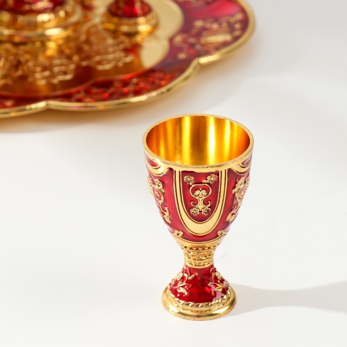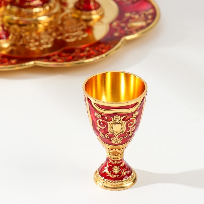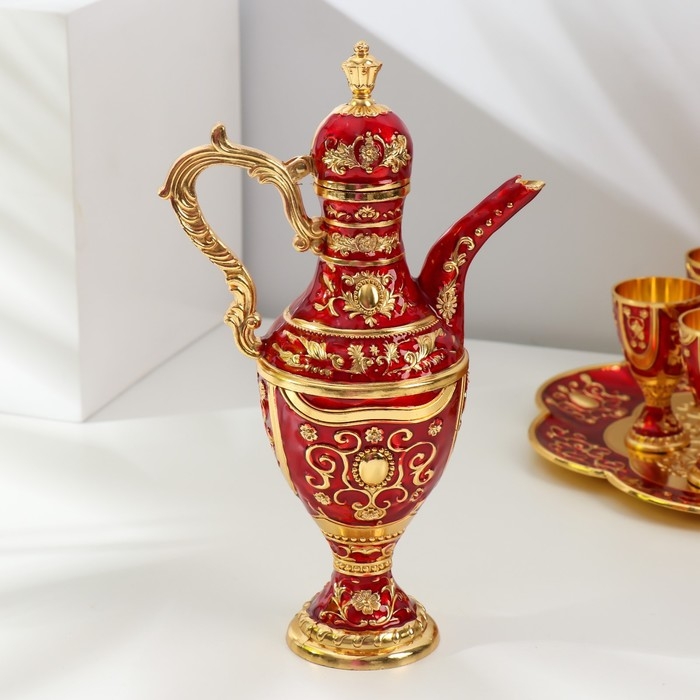 Набор винный кувшин, 6 бокалов и поднос "Турция. Цветы и узоры" красный с золотом