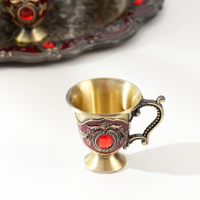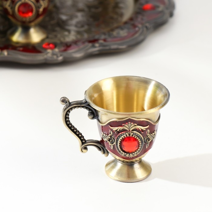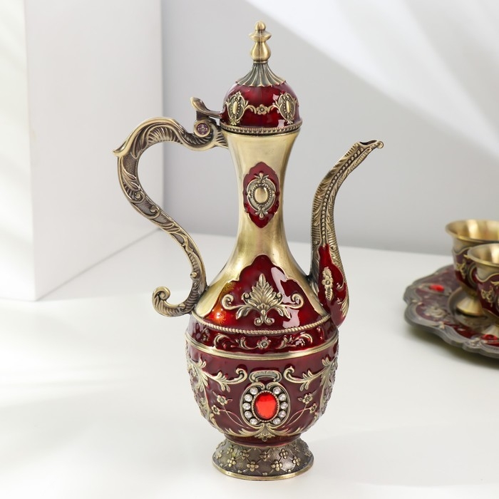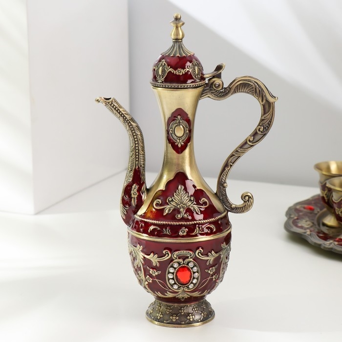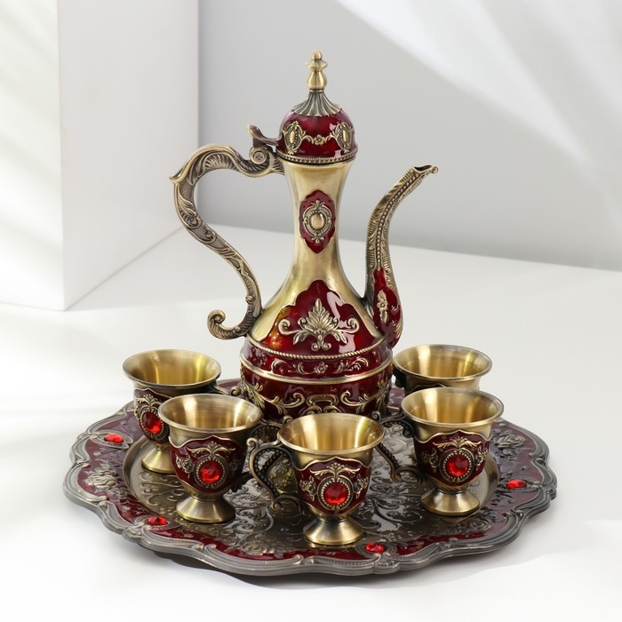 Набор чайный кувшин, 6 бокалов и поднос "Стамбул. Розы и узоры" красный с золотом