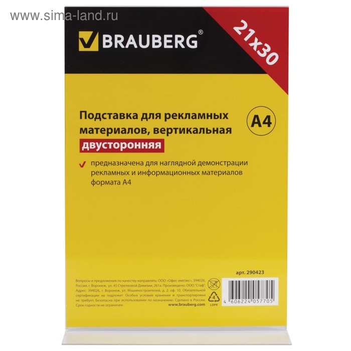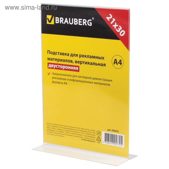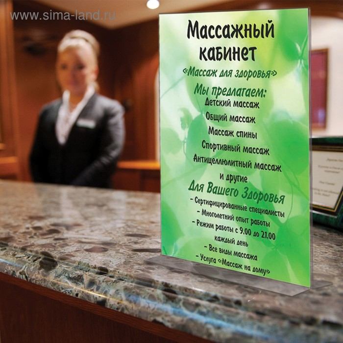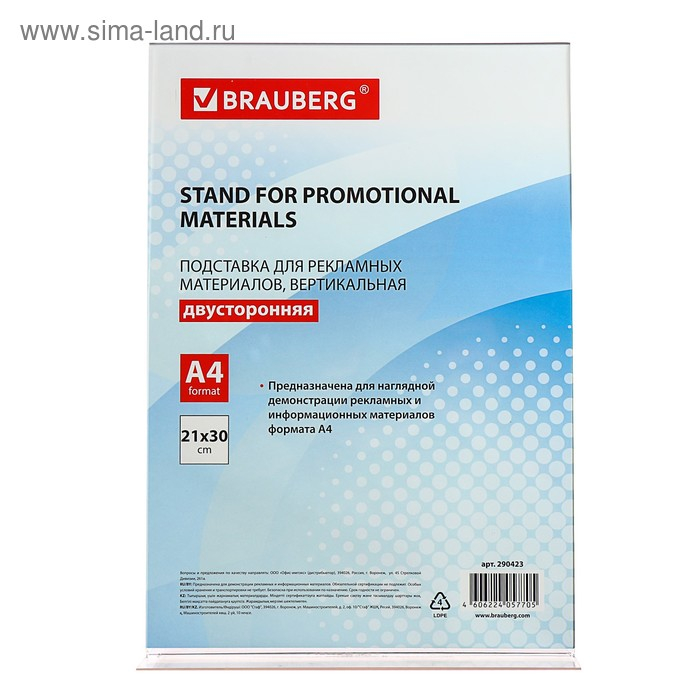 Подставка для рекламных материалов А4, вертикальная, 210 х 297 мм, настольная, двусторонняя, оргстекло