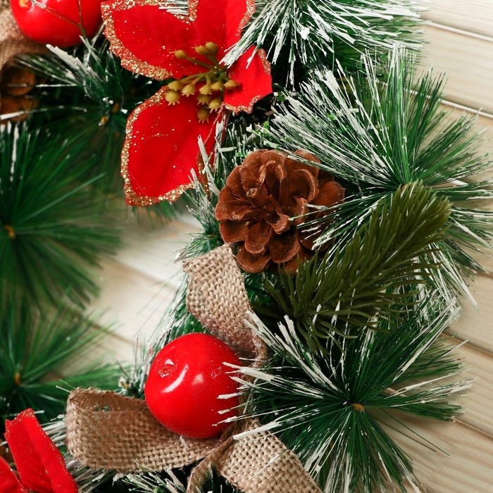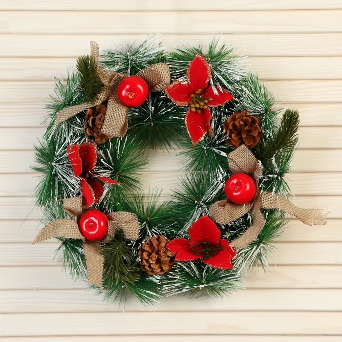 Венок новогодний d- 26 см "Уютная сказка" алые цветы шишки