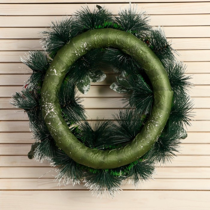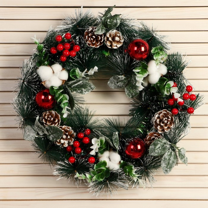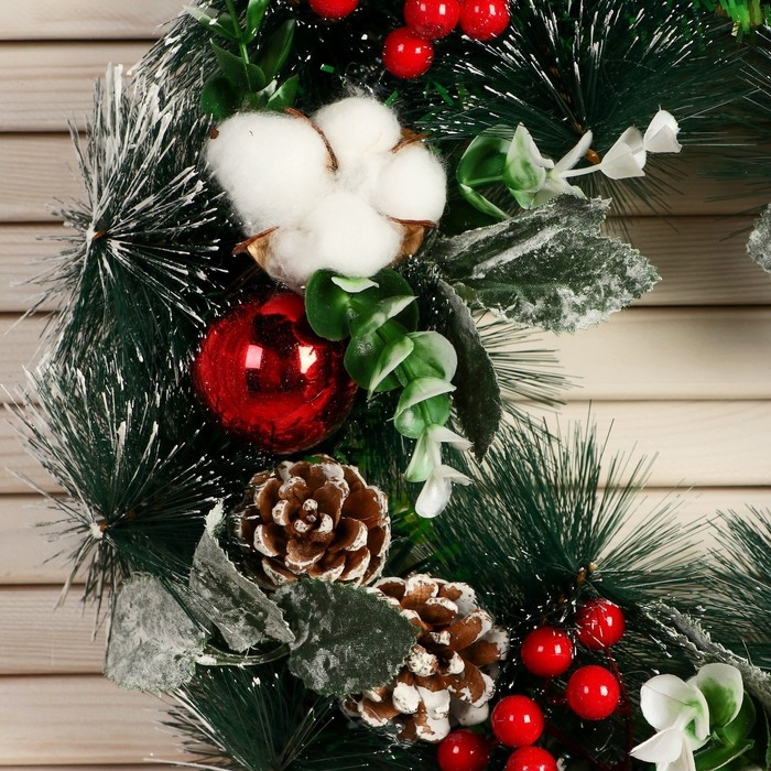 Венок новогодний d- 34 см "Уютная сказка" хлопок ягоды листья в снегу