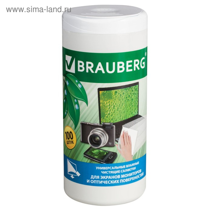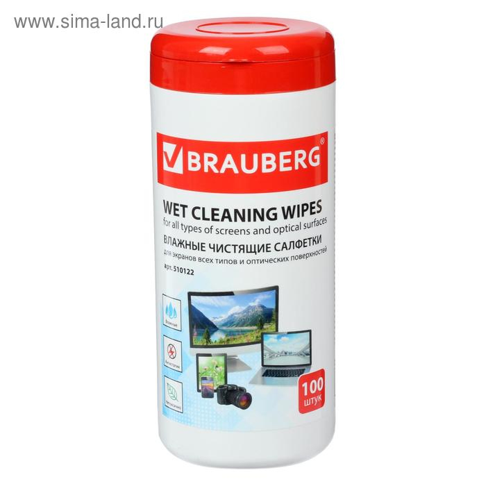 Чистящие салфетки BRAUBERG для мониторов и оптических поверхностей, влажные, в тубе 100 штук