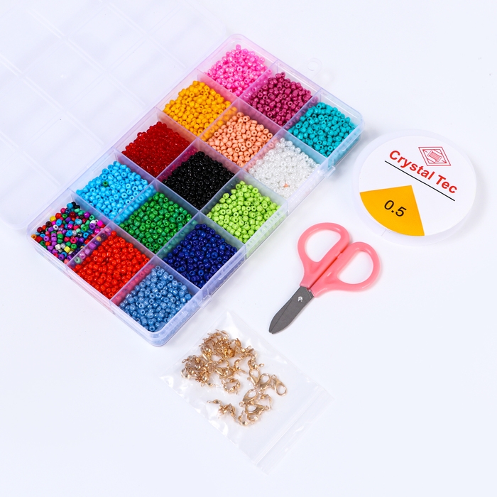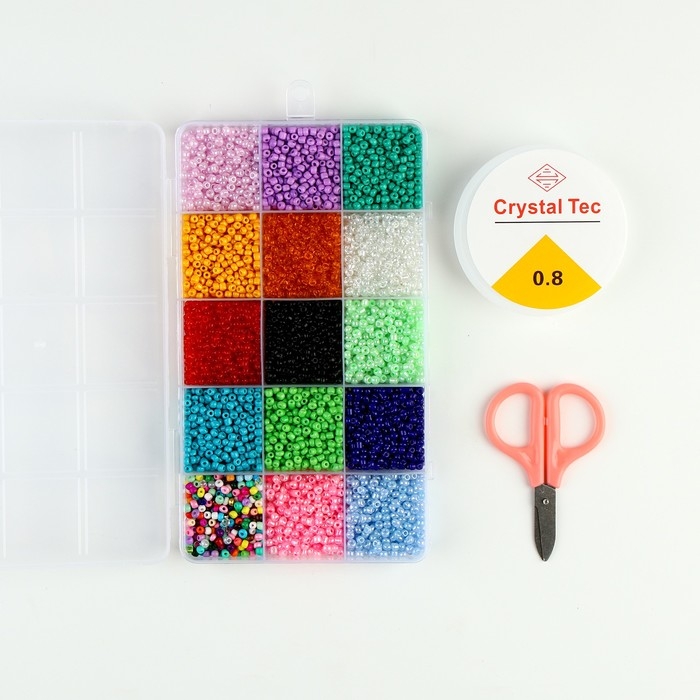 Набор для создания украшений, 15 цветов, размер 1 штуки: 3 мм., леска, ножницы
