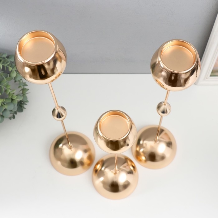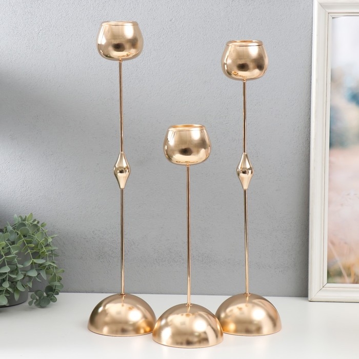Подсвечник металл на 1 свечу "Капли" набор 3 шт d=5 см золото 12х36,5, 12х46,5, 12х56 см