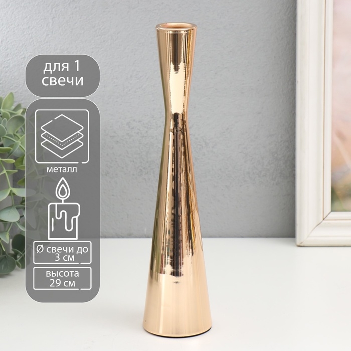 Подсвечник металл на 1 свечу "Песочные часы" d=3 см золото 6х29 см