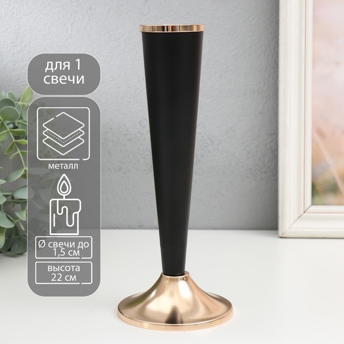 Подсвечник металл на 1 свечу "Эвиан" d=1,5 см чёрный с золотом 9х22 см