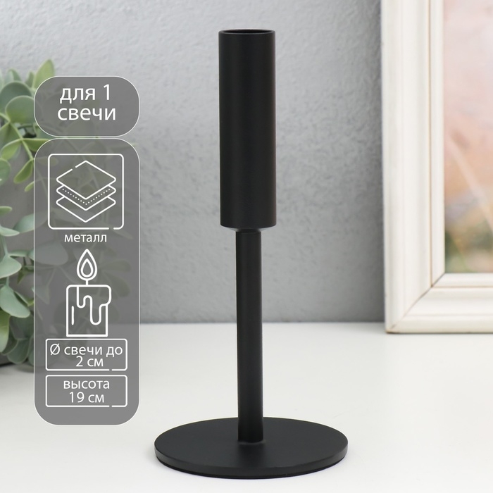 Подсвечник металл на 1 свечу "Симпл" d=2 см чёрный 9х19 см