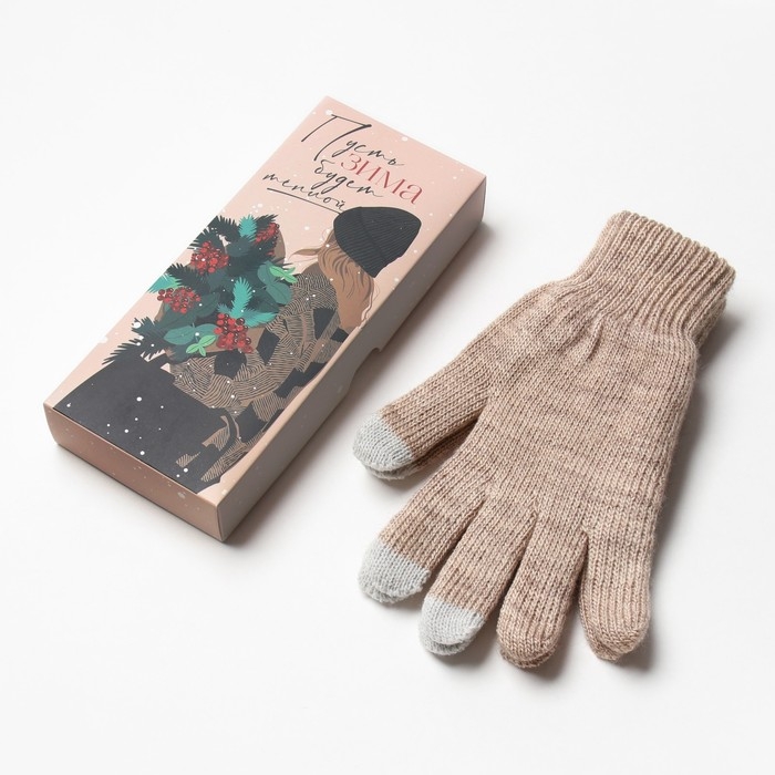 Женские перчатки в подарочной коробке "Зима" р.19