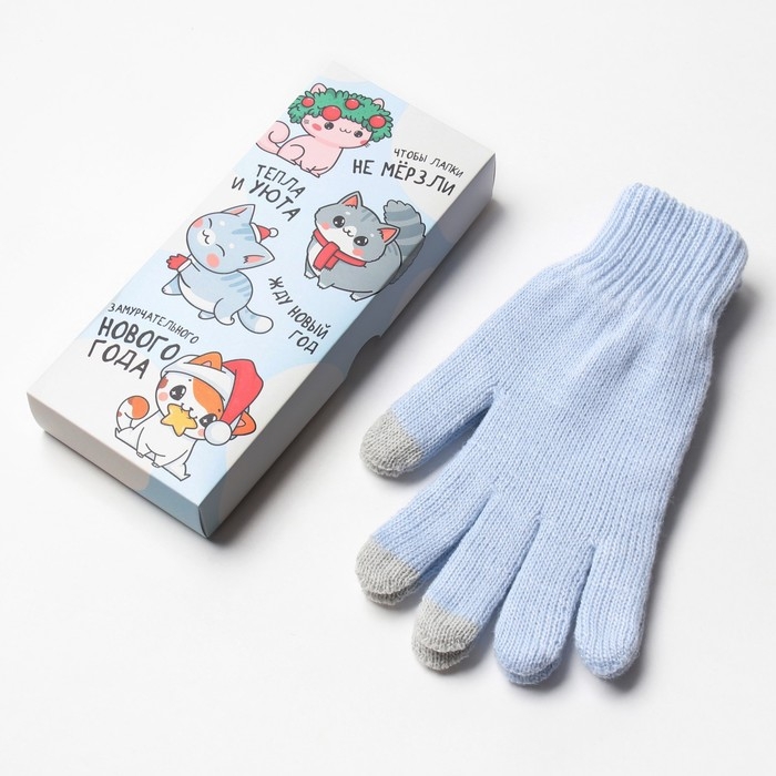 Женские перчатки в подарочной коробке "Котики" р.19