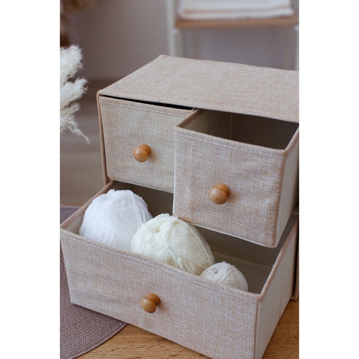 Короб LaDо́m «Франческа», 3 выдвижных ящика, 30×20×28 см, цвет бежевый