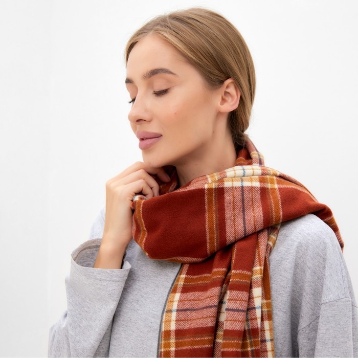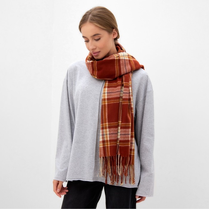 Шарф зимний с кистями MINAKU 65*180 + 8 см клетка