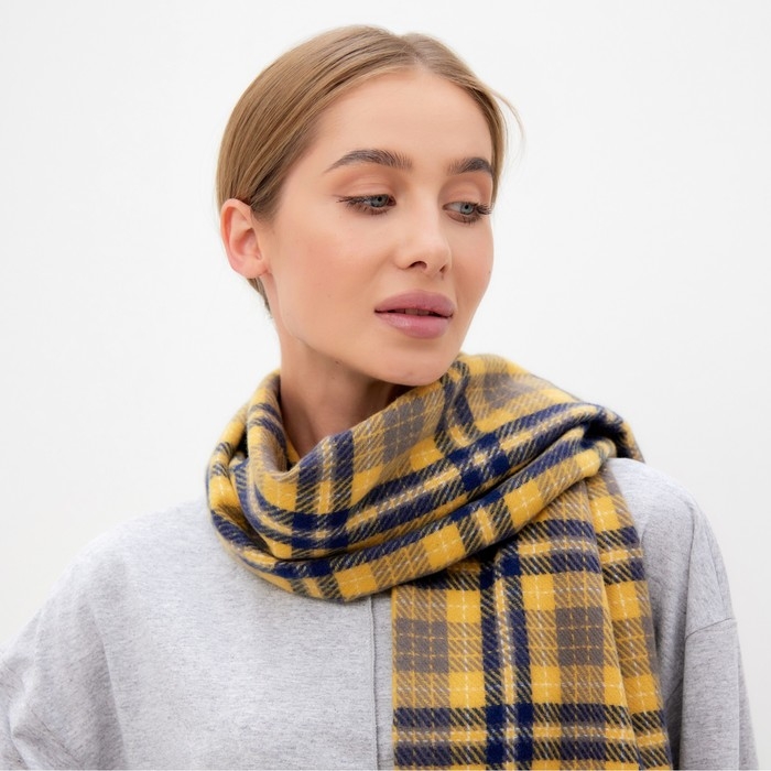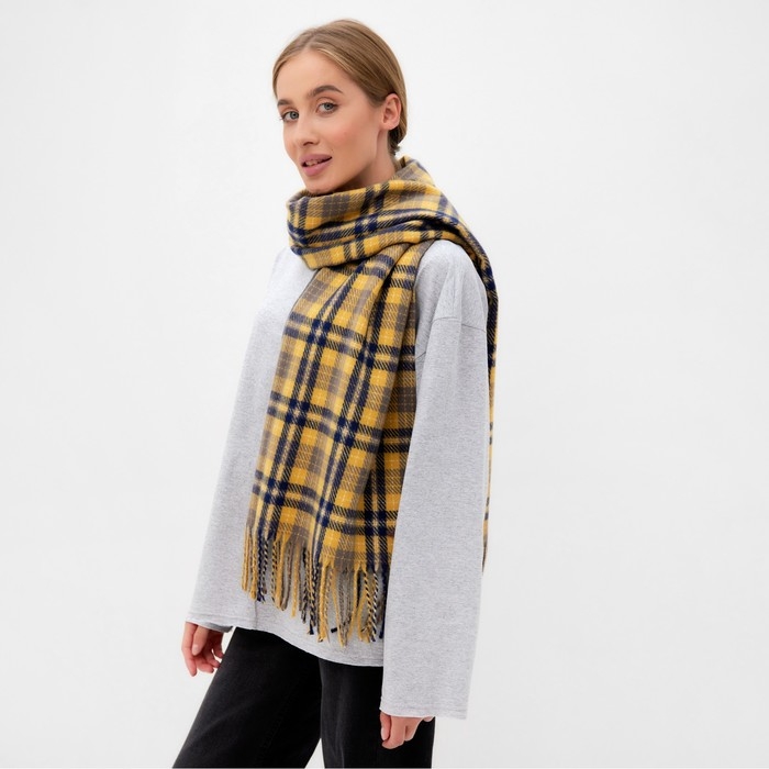 Шарф зимний с кистями MINAKU 65*180 + 8 см клетка