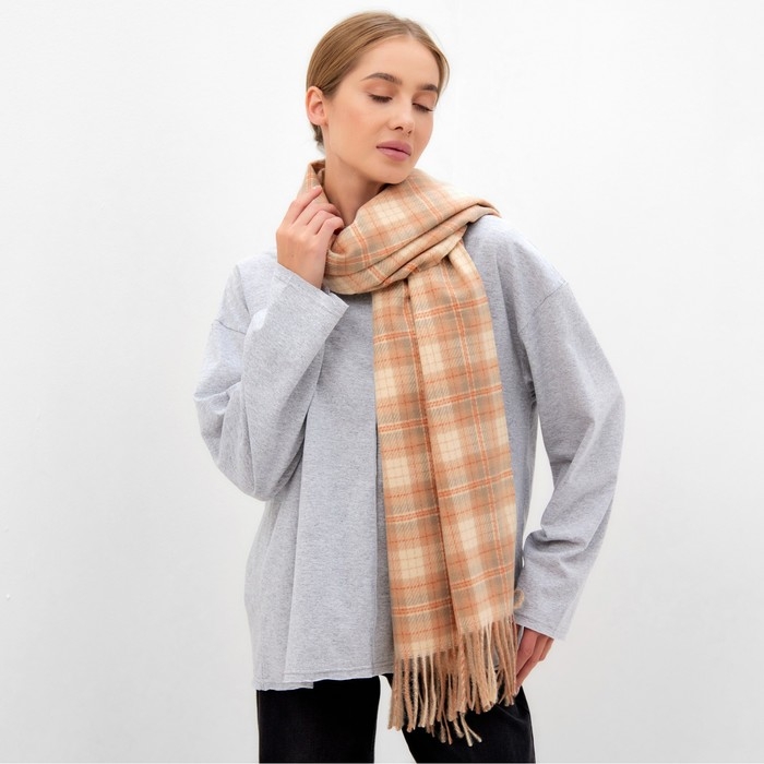 Шарф зимний с кистями MINAKU 65*180 + 8 см клетка