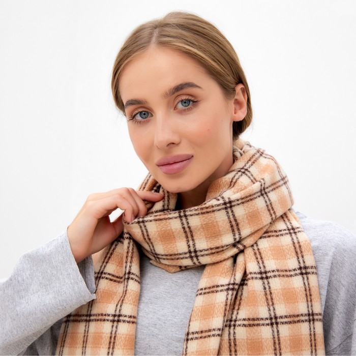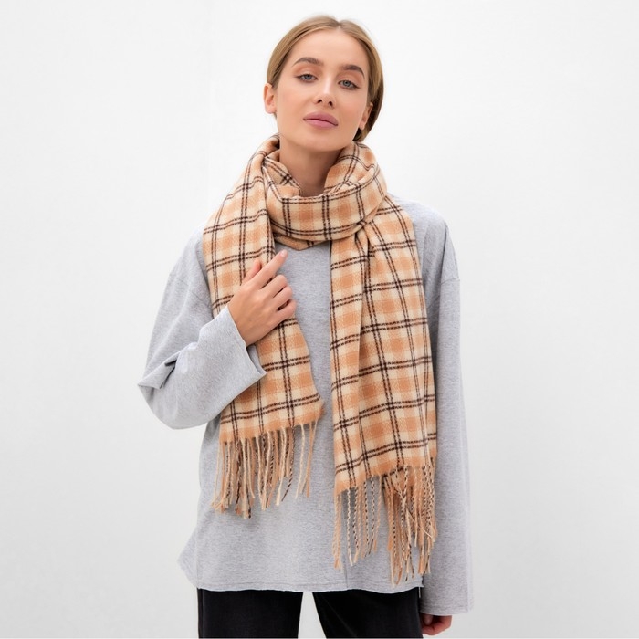 Шарф зимний с кистями MINAKU 65*180 + 8 см клетка