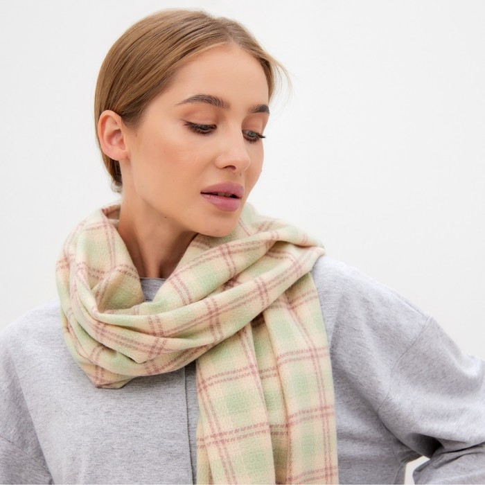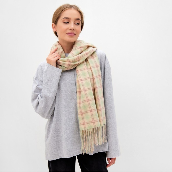 Шарф зимний с кистями MINAKU 65*180 + 8 см клетка