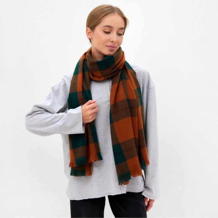 Шарф зимний с кистями MINAKU 65*180 + 3 см клетка
