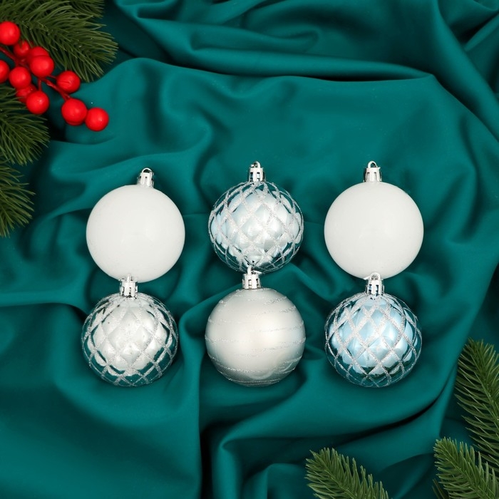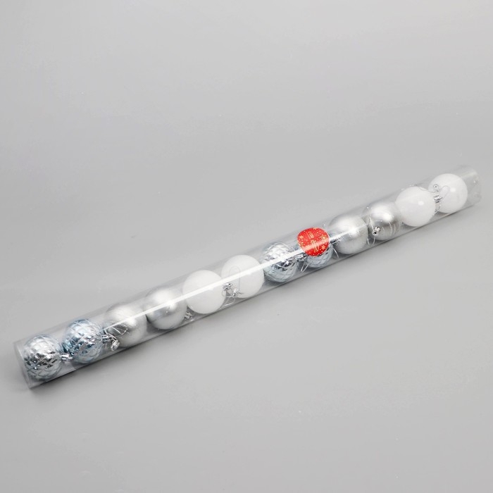 Набор шаров пластик d-6 см, 12 шт "Агнет" белый серебро
