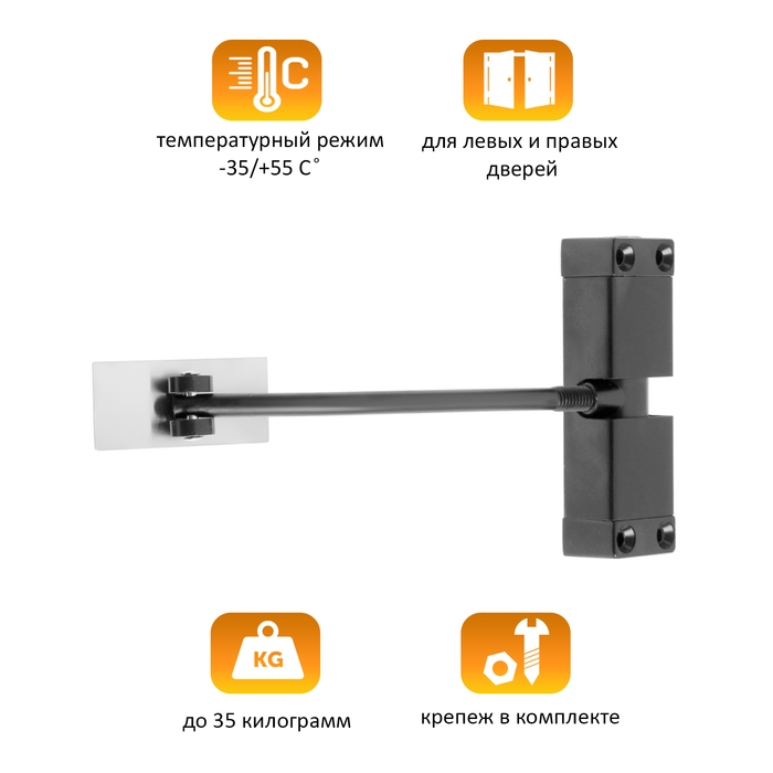 Доводчик дверной пружинный LOCKLAND DS-10, цвет черный, 35 кг