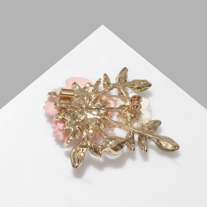 Брошь «Цветы» на ветке, цвет розово-белый в золоте