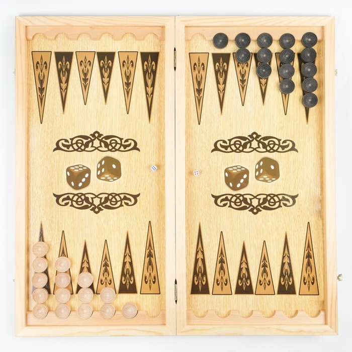 Нарды деревянные большие, настольная игра "Узор", 40 х 40 см, с полем для игры в шашки