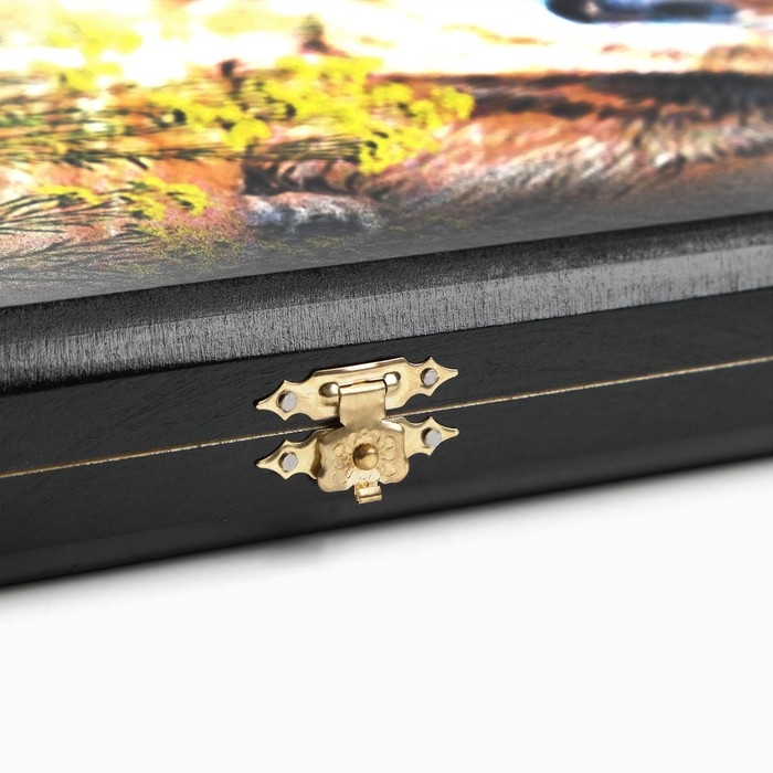 Складные нарды имеют прочную, качественную фурнитуру, включая замок, благодаря чему их удобно брать с собой. Нарды - отличный подарок папе, мужу, парню, дедушке, коллеге, начальнику, другу на день рождения, юбилей, на Новый год или 23 февраля.