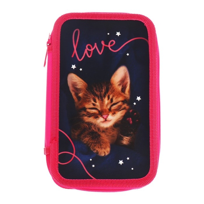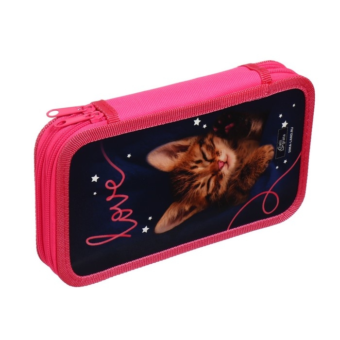 Пенал 2 секции, 125 х 205 х 40 мм, Calligrata 30П26/2 "Котенок", ламинированный картон
