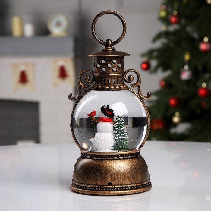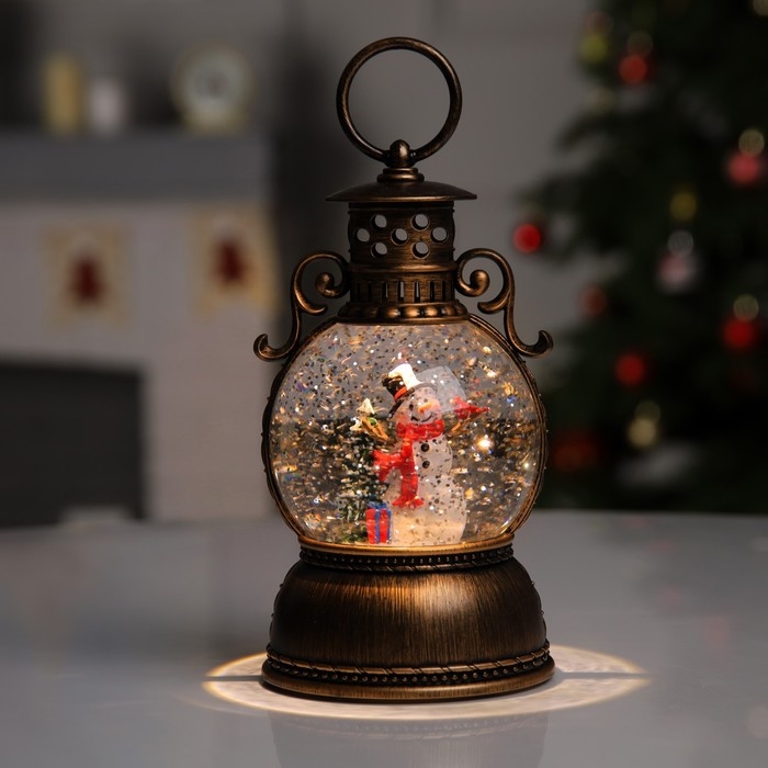 Светодиодная фигура «Фонарь со снеговиком» 11 × 19 × 11 см, пластик, батарейки ААх3 (не в комплекте), USB, свечение тёплое белое