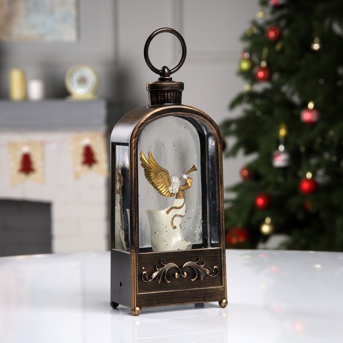 Светодиодная фигура «Фонарь с ангелом» 10.2 × 23 × 5.8 см, пластик, батарейки ААх3 (не в комплекте), USB, свечение тёплое белое