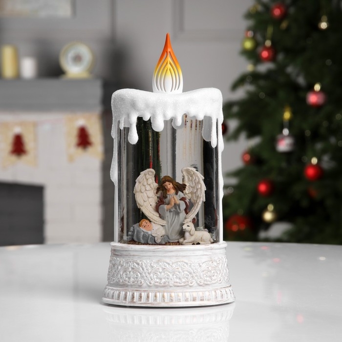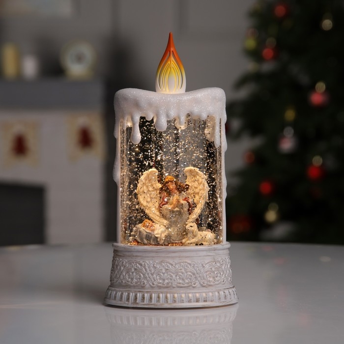 Светодиодная фигура «Свеча с ангелом» 12.3 × 24 × 8 см, пластик, батарейки ААх3 (не в комплекте), USB, свечение тёплое белое