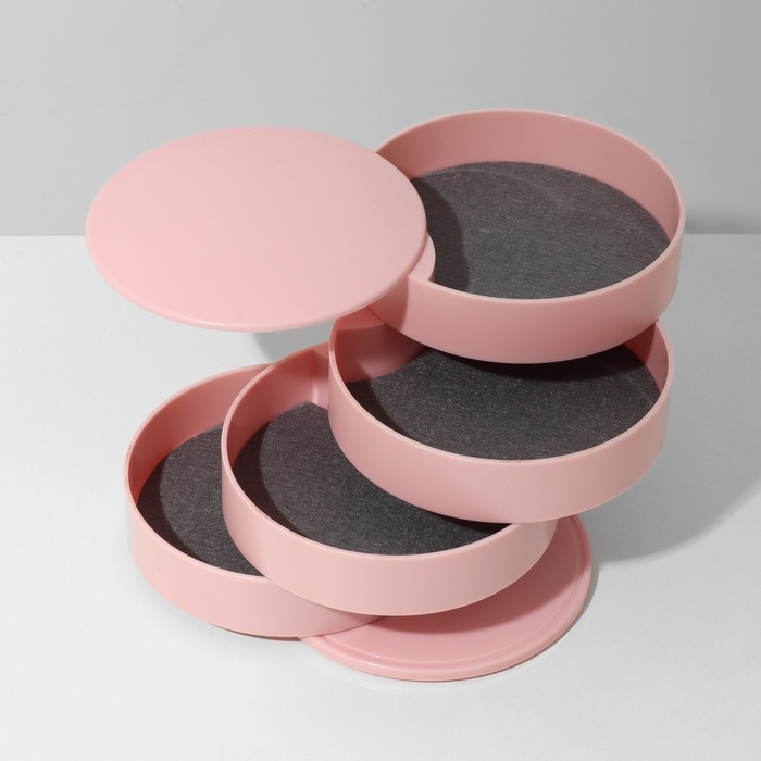Подставка универсальная «Шкатулка» круглая, 4 секции, 10×10×10 см, цвет розовый