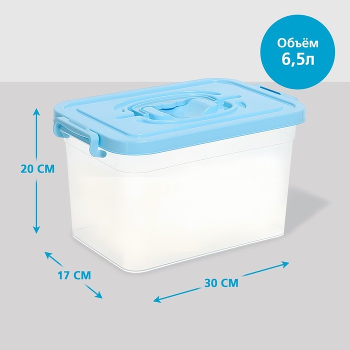 Контейнер для хранения с крышкой, 6,5 л, цвет голубой