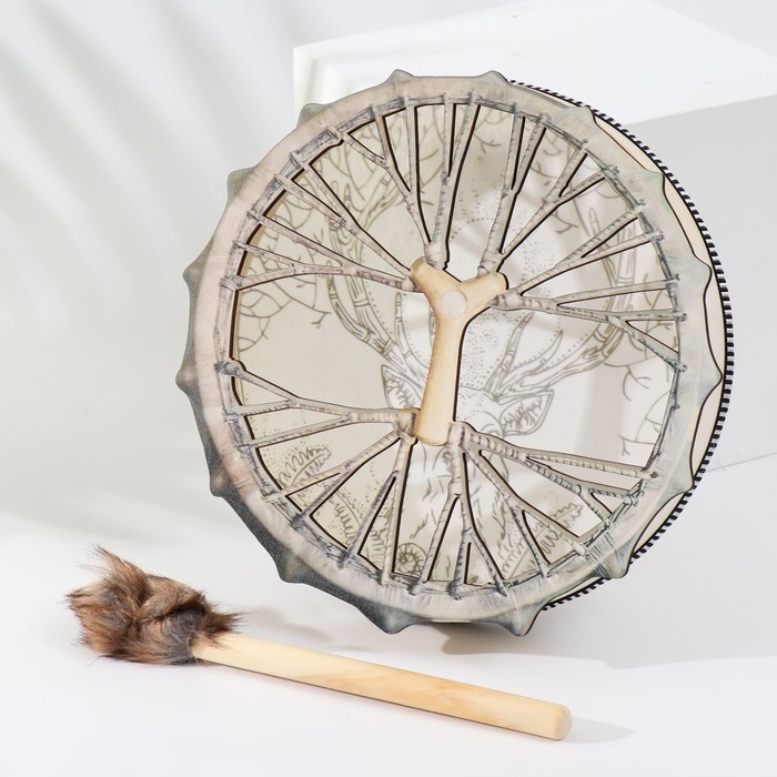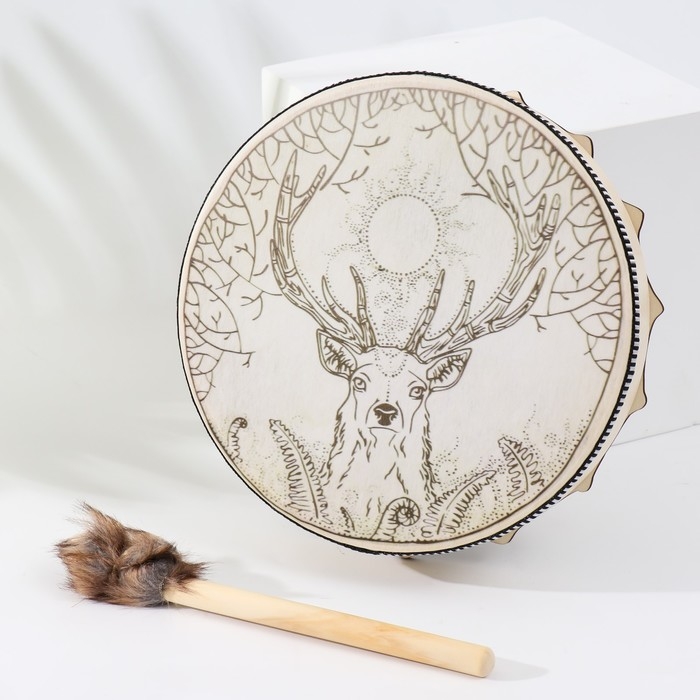 Шаманский бубен "Олень с ветвистыми рогами" с колотушкой 5х25х25 см