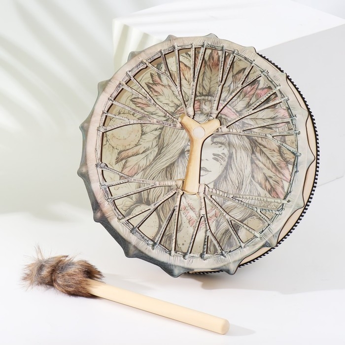 Шаманский бубен "Девушка из племени индейцев" с колотушкой 5х25х25 см
