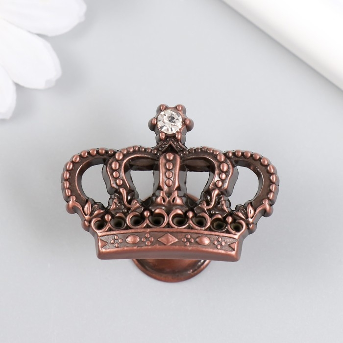 Ручка для шкатулки металл "Корона" страза, состаренная медь 4,5х3,2х2,6 см