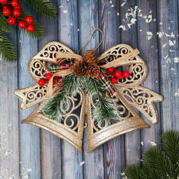 Украшение новогоднее "Колокольчики элит, с ягодками" 25х18 см, золото
