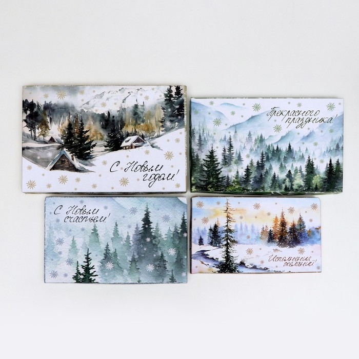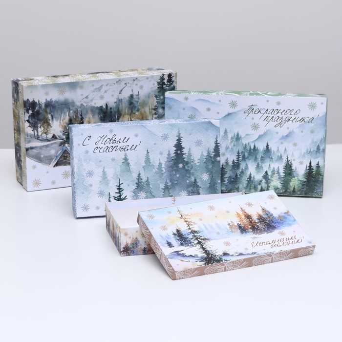 Набор подарочных новогодних коробок 4 в 1 "Зимние чудеса", 30 х 20 х 8 - 24 х 14 х 5 см. Новый год