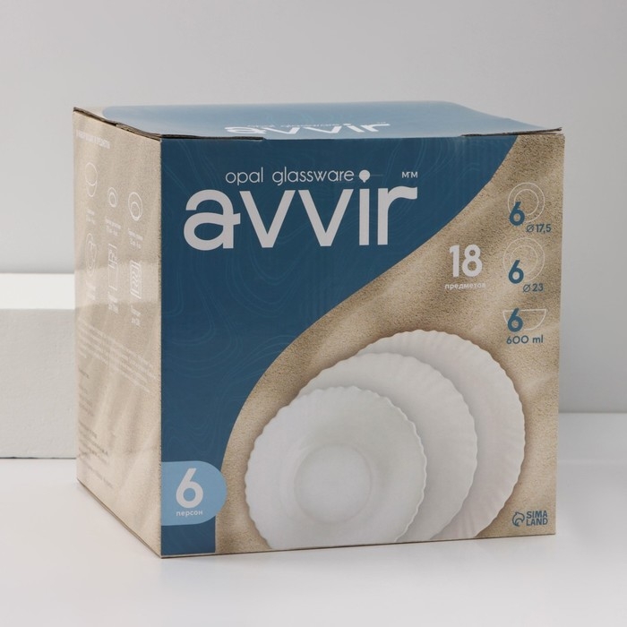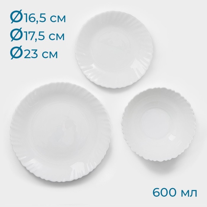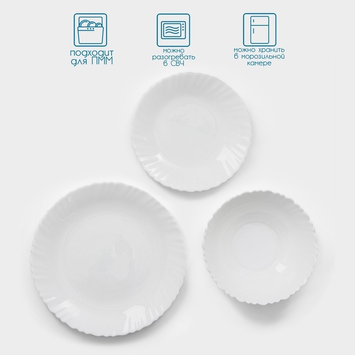 Сервиз столовый «Дива», 18 предметов: 6 тарелок d=17,5 см, d=23 см, d=16,5 см, стеклокерамика, цвет белый