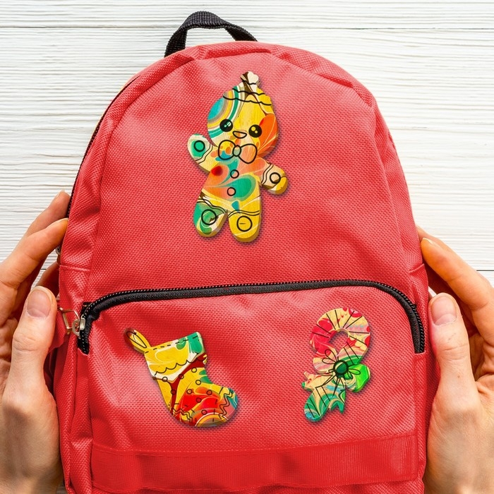 - Достаньте основу из воды, дождитесь высыхания краски и приклейте с обратной стороны булавку.