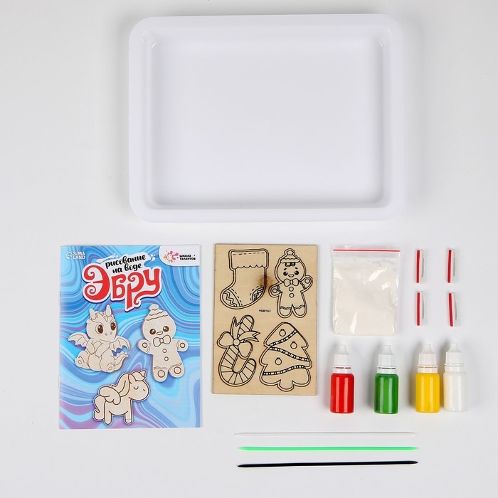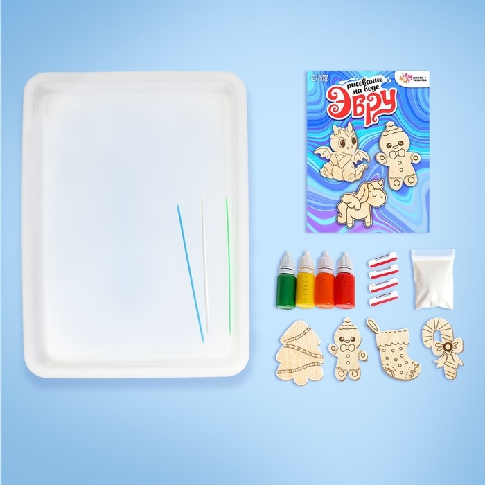 Набор для творчества «Рисуем в технике Эбру», Новый год, А5, 5 ёлочных украшений