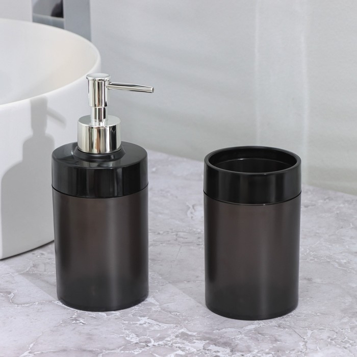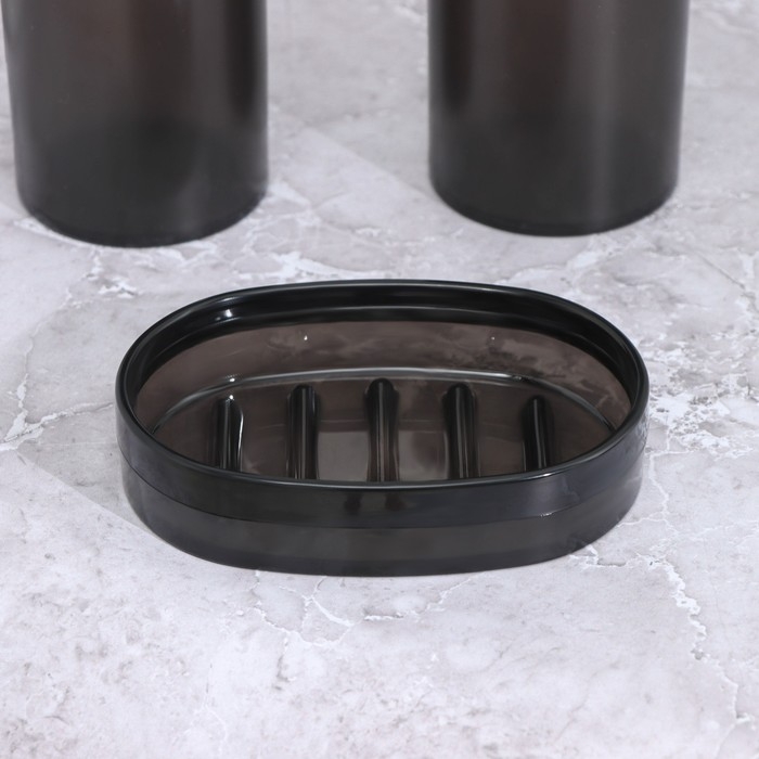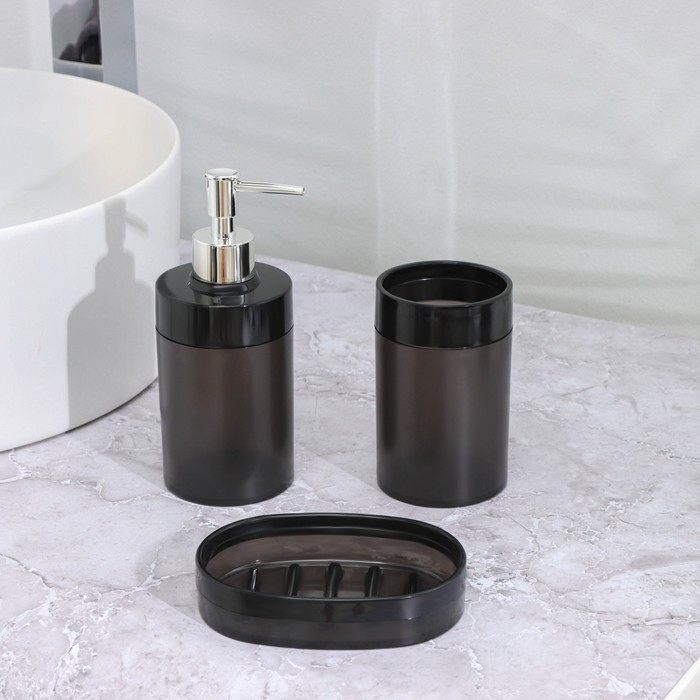 Набор для ванной комнаты 3 предмета: стакан для зубных щёток, дозатор, мыльница, цвет чёрный