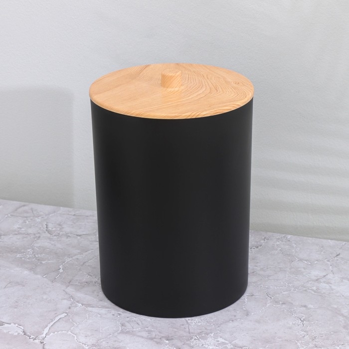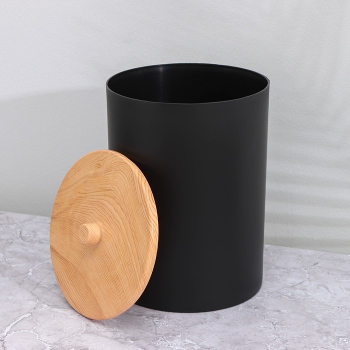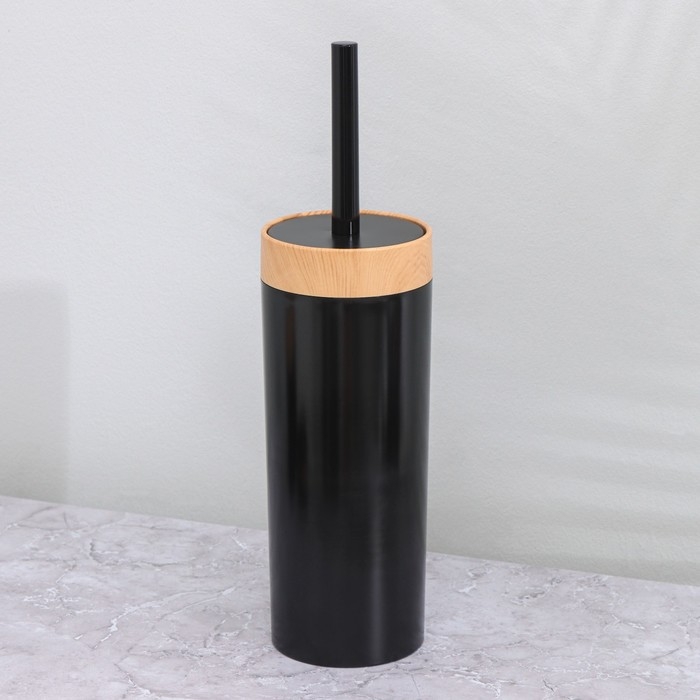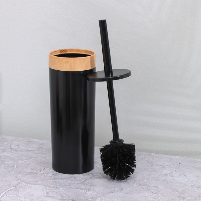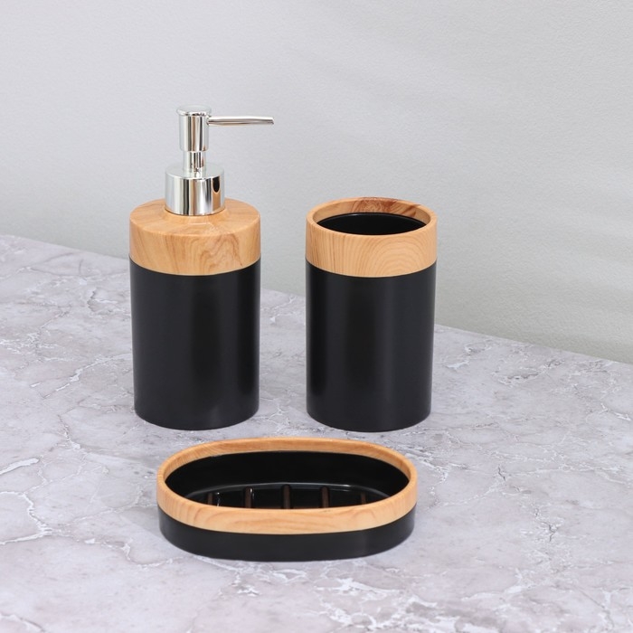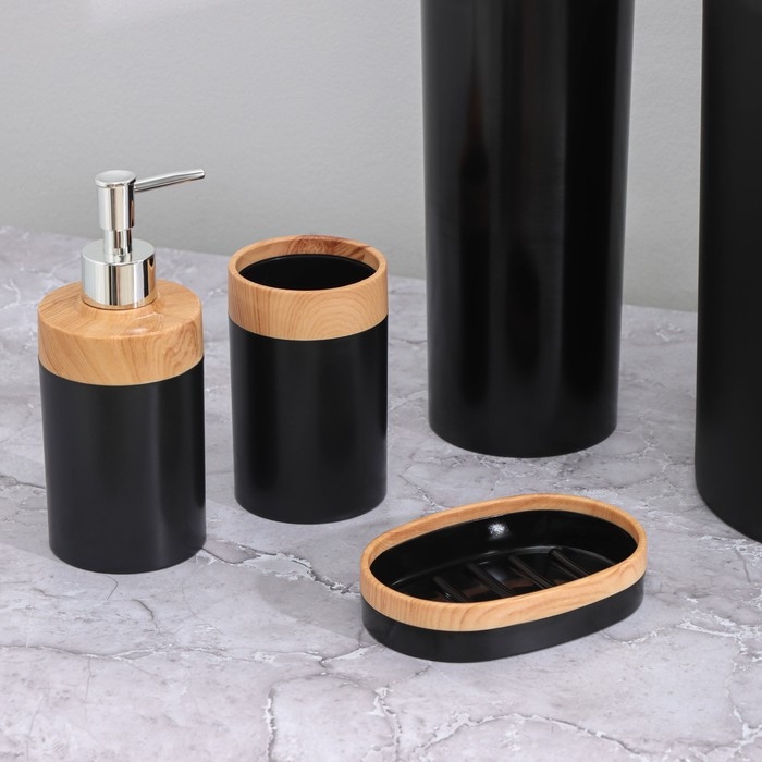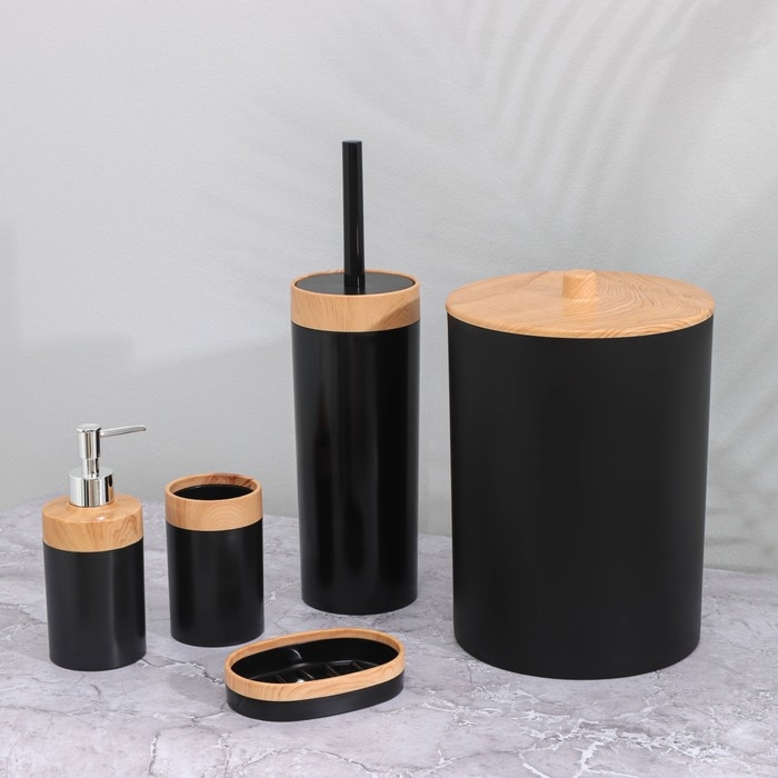 Набор для ванной комнаты, 5 предметов: ведро для мусора, ёрш с подставкой, мыльница, дозатор, стакан, цвет чёрный