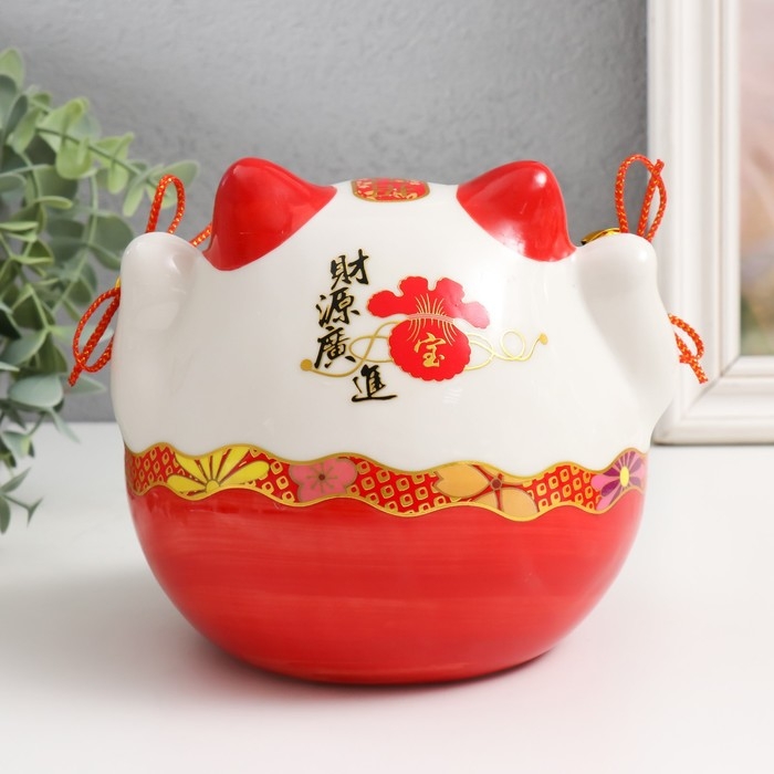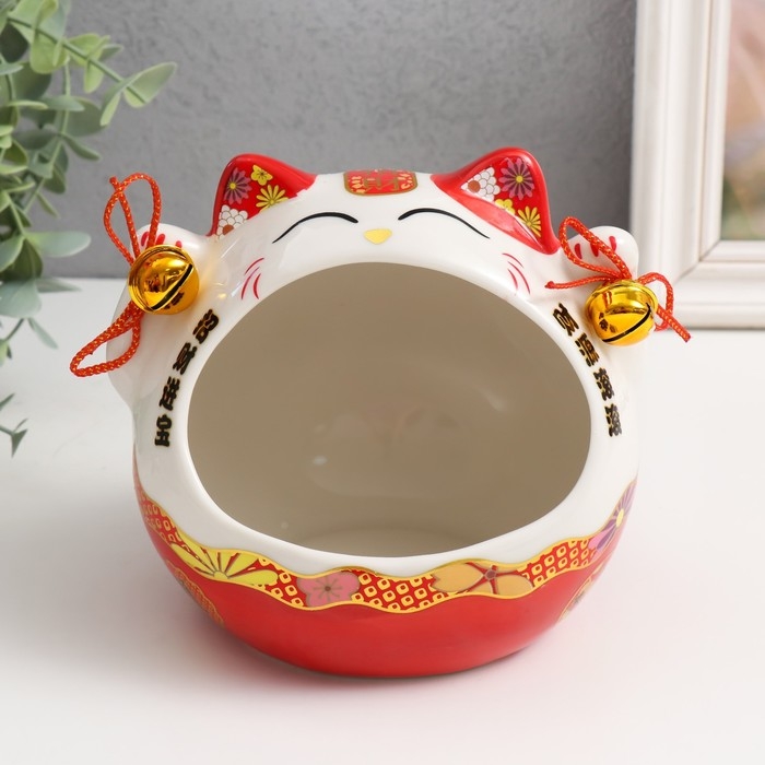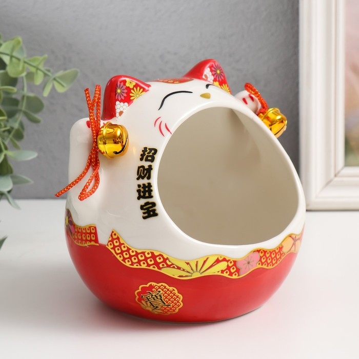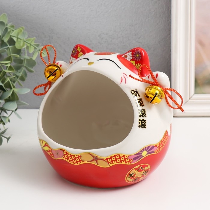 Сувенир керамика "Рыжий кот Манэки-нэко с колокольчиками" 12,5х16,5х14 см