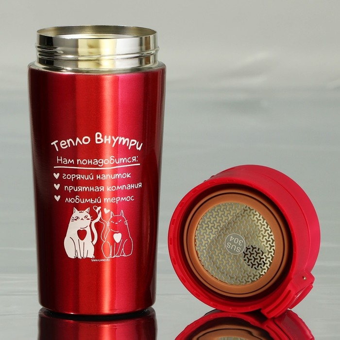 –Корпус изготовлен из высококачественной нержавеющей стали, которая защищает содержимое от внешних воздействий, сохраняет вкус напитка неизменным, не нагревается и не обжигает руки.