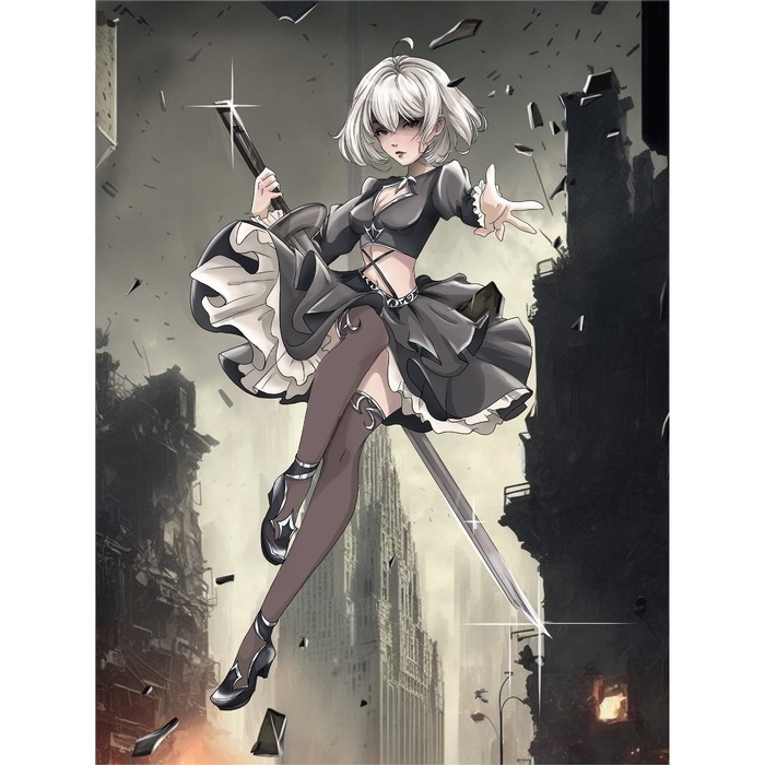 Алмазная мозаика с частичным заполнением на холсте «Девушка с клинком», 20 х 30 см