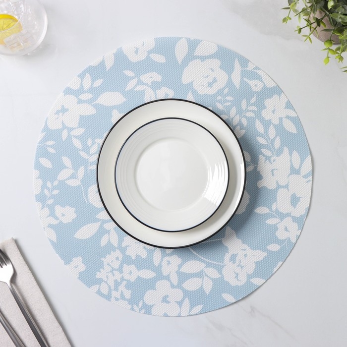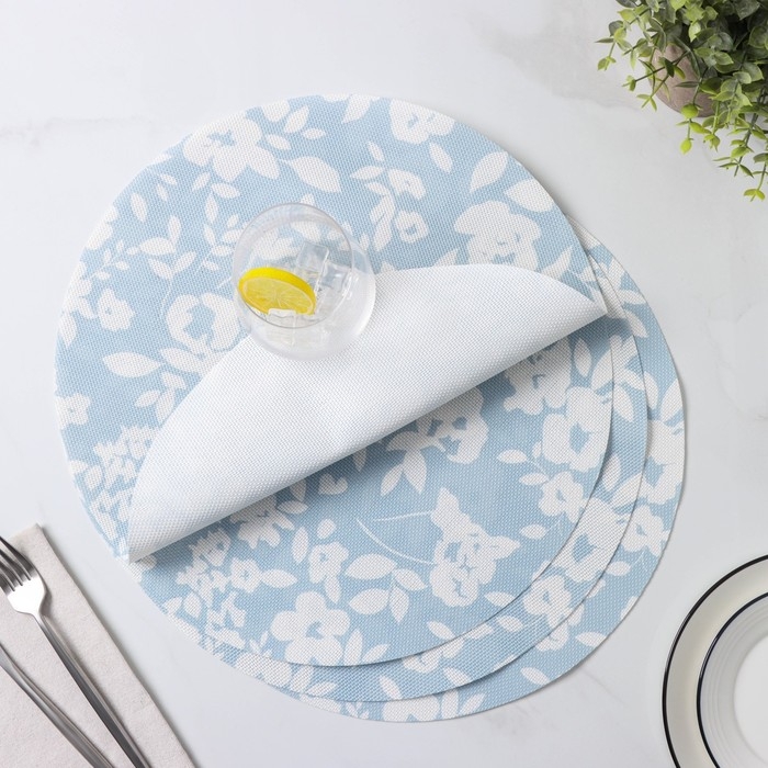 Салфетки сервировочные на стол Доляна «Акварель. Круг», 4 шт, d=38 см, цвет голубой